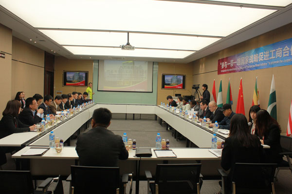 2016年4月27日,巴基斯坦山東商會(huì)考察團(tuán)“參與一帶一路國家戰(zhàn)略促進(jìn)工商合作”座談會(huì),在聯(lián)橋國際大廈4樓會(huì)議中心舉行。也門全權(quán)大使艾哈邁德、坦桑尼亞全權(quán)公使喬治·馬農(nóng)紀(jì)及夫人、津巴布韋經(jīng)濟(jì)商務(wù)參贊麥克斯威爾等國外貴賓,巴基斯坦山東商會(huì)會(huì)長程曉耘、巴基斯坦山東商會(huì)威海分會(huì)會(huì)長蔡曉萌等領(lǐng)導(dǎo),以及名流集團(tuán)、鹽業(yè)集團(tuán)、藍(lán)星集團(tuán)、魏橋紡織、威建集團(tuán)等威海工商企業(yè)界的各位領(lǐng)導(dǎo)參加座談。會(huì)議由巴基斯坦(中國)山東商會(huì)主辦,聯(lián)橋集團(tuán)、名流集團(tuán)協(xié)辦。威海市工商聯(lián)常委、聯(lián)橋集團(tuán)董事長慕镕鍵主持會(huì)議。
