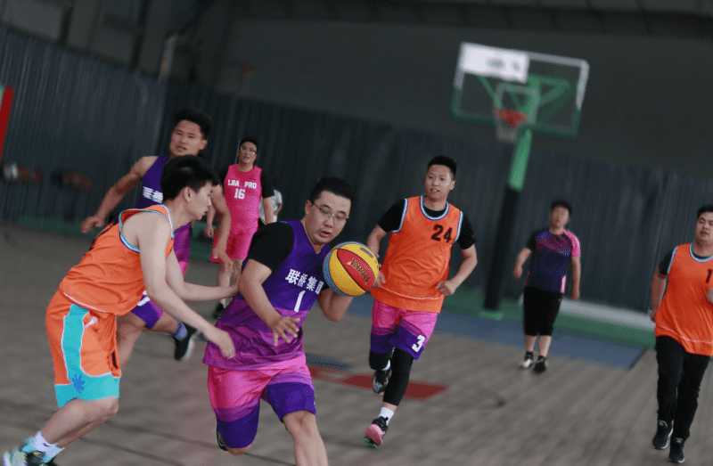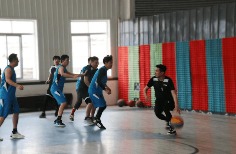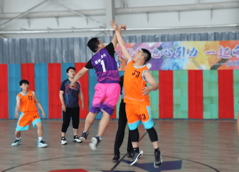 跳球、長(zhǎng)傳、快攻、投籃,集團(tuán)總部隊(duì)以迅雷不及掩耳之勢(shì)、一氣呵成完成系列動(dòng)作,迅速拿下首分,把眾人帶入狀態(tài);塑料新材隊(duì)也毫不示弱,新銳出擊,勢(shì)不可擋,馬上一記三分予以回應(yīng)。比賽不斷進(jìn)行,雙方比分交替上升,你方投籃精準(zhǔn),我方防守積極,雙方球員你爭(zhēng)我?jiàn)Z、互拼互搶,首場(chǎng)比賽就把現(xiàn)場(chǎng)氣氛帶入高潮。球場(chǎng)上熱血澎湃,觀眾席也一片沸騰——吶喊助威,拍手叫好。聯(lián)橋人的熱情在初夏驕陽(yáng)的襯托下,更加生機(jī)蓬勃。