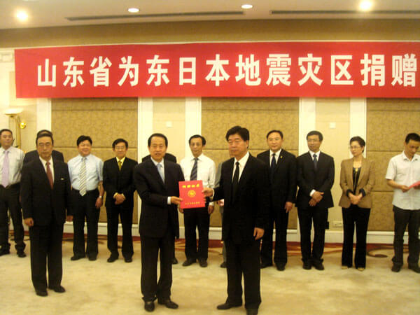 山東省慈善總會(huì)會(huì)長謝玉堂代表山東省慈善總會(huì)向日本的地震及其引發(fā)的海嘯和核泄漏事故表示慰問和哀悼。他希望日本人民盡快戰(zhàn)勝這場(chǎng)突如其來的災(zāi)難,迅速地恢復(fù)正常的生活和生產(chǎn)秩序。作為友好近鄰,我們特意組織了本次捐贈(zèng)活動(dòng),威海聯(lián)橋集團(tuán)等一些有責(zé)任、有愛心的企業(yè)慷慨解囊,并把所得善款通過日中經(jīng)濟(jì)交流協(xié)會(huì)轉(zhuǎn)給最需要幫助的地震災(zāi)區(qū),為災(zāi)區(qū)民眾的生產(chǎn)和生活做出一點(diǎn)貢獻(xiàn)。