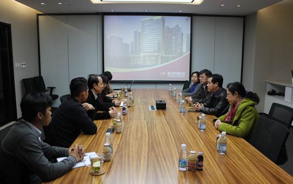 2015年12月29日,威海檢驗(yàn)檢疫局局長(zhǎng)陳俊新一行四人來聯(lián)橋集團(tuán)考察調(diào)研,集團(tuán)公司董事長(zhǎng)慕镕鍵等領(lǐng)導(dǎo)迎接并舉行座談。
